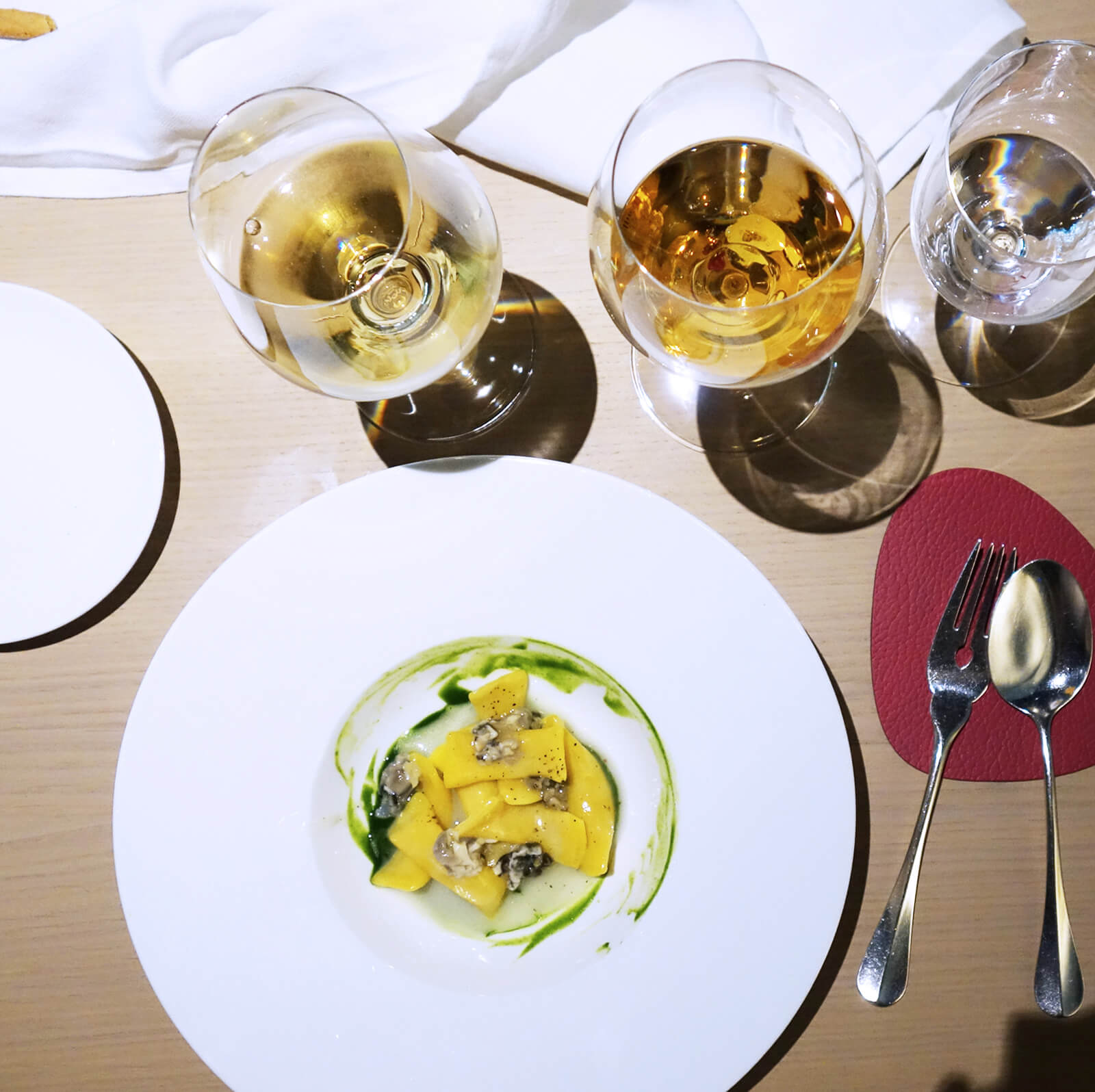 Così, nella lieve luce del ristorante con il nuovo arredamento minimal e la luce che viene dalle grandissime vetrate che si affacciano verso il bosco e ti fanno sentire immersa anche nella natura, ho fatto questa meravigliosa esperienza! I vini che sono stati serviti di accompagnamento hanno esaltato se possibile il tutto… E vogliamo parlare del pane e dei grissini? Tutto realizzato con pasta madre e farine selezionatissime e vi giuro che farei tranquillamente un pranzo solo mangiando quelli 😉
